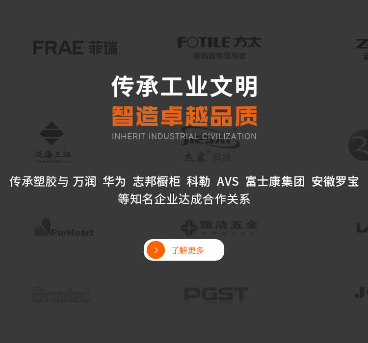東莞傳承塑膠電子有限公司創(chuàng)立于2008年,位于世界制造業(yè)名城廣東省東莞市。以傳承工業(yè)文明 ,智造卓越品質(zhì)為已任。經(jīng)過十余年發(fā)展沉淀致力于打造為塑膠標(biāo)準(zhǔn)件行業(yè)的優(yōu)秀標(biāo)桿企業(yè)。現(xiàn)有職員50余人,業(yè)務(wù)遍及60多個國家和地區(qū),服務(wù)多家知名企業(yè),如:科勒華為、歐司朗 、方太、中國建筑工程公司、AVS等。 公司主營產(chǎn)品有塑料膨脹管,塑料螺絲保護(hù)帽,配線器材等類產(chǎn)品。經(jīng)過十余年的研發(fā)創(chuàng)新與管理實踐,在渠道供應(yīng)鏈,產(chǎn)品設(shè)計,生產(chǎn)管理方面具備較高專業(yè)的技能及大客戶服務(wù)能力。截至2020年底,累計申請有產(chǎn)品專利三十余項,能根據(jù)客戶要求開發(fā)模具及定做非標(biāo)產(chǎn)品,產(chǎn)品符合環(huán)保認(rèn)證,UL阻燃認(rèn)證,抗老化UV認(rèn)證等。 公司目前已成為國內(nèi)外多家知名企業(yè)的長期合作伙伴,我們秉承“客戶第一,誠信 ,創(chuàng)新,合作共贏”的經(jīng)營理念,愿與您攜手共同打造更加優(yōu)質(zhì)的產(chǎn)品與服務(wù)。